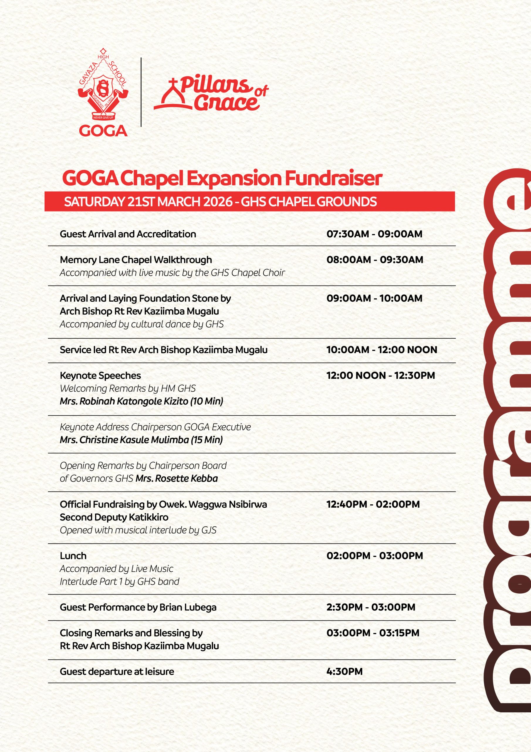 Pillars of Grace – GOGA Event & Program | 21st March 2026